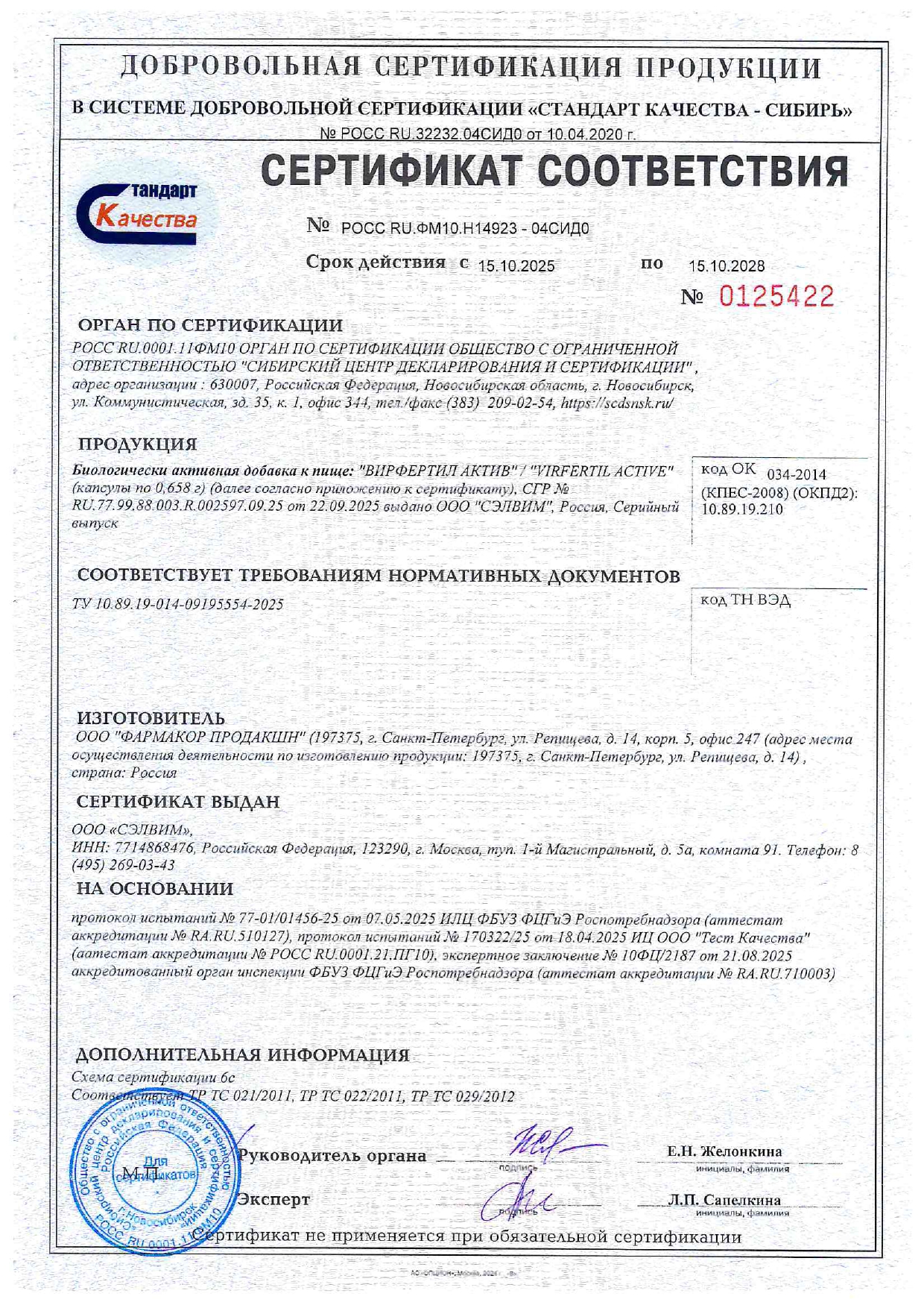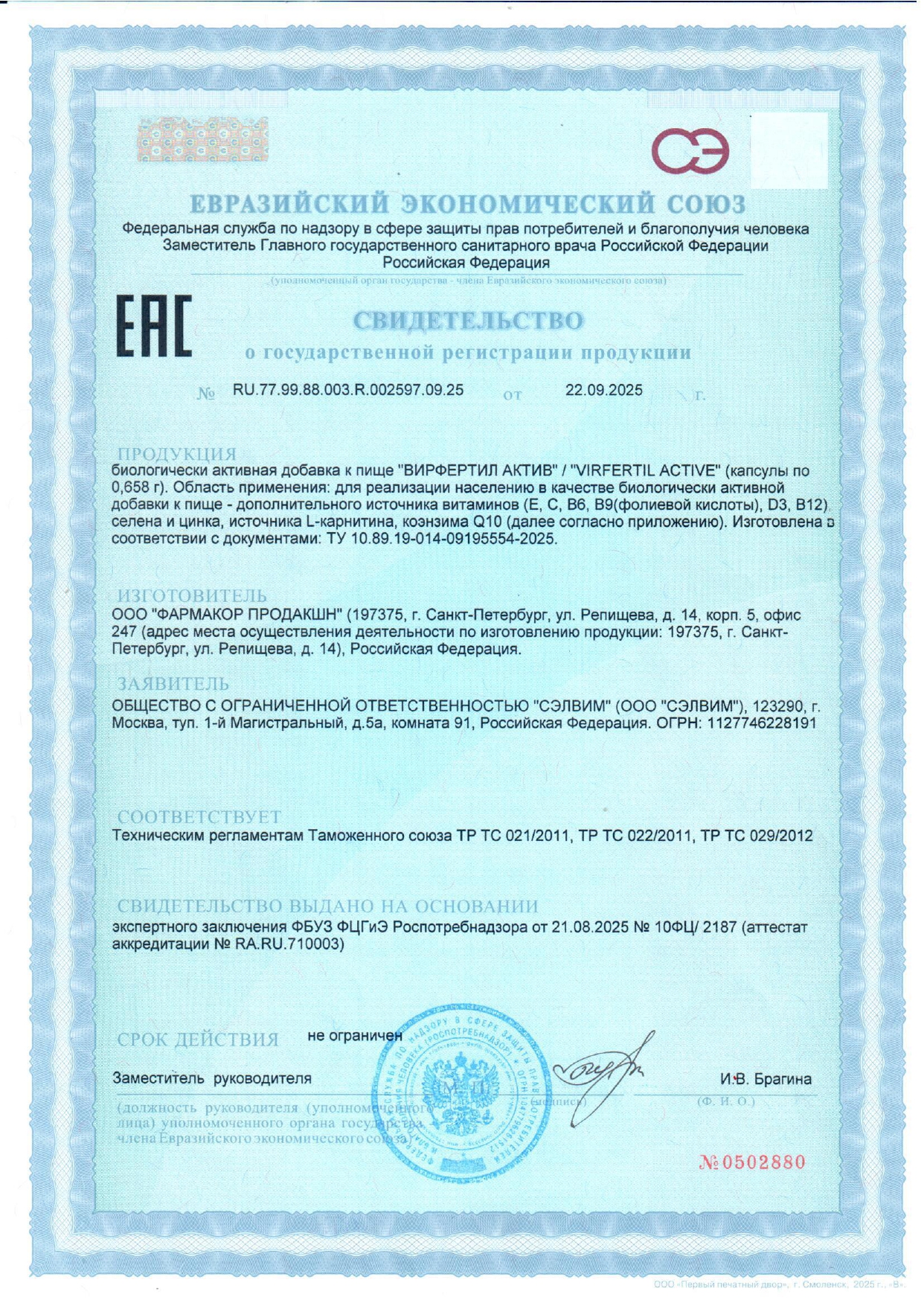 | Витамин D3, мкг (МЕ) | 12,5 (500) | 250,0**, но не превышает ВДУ |