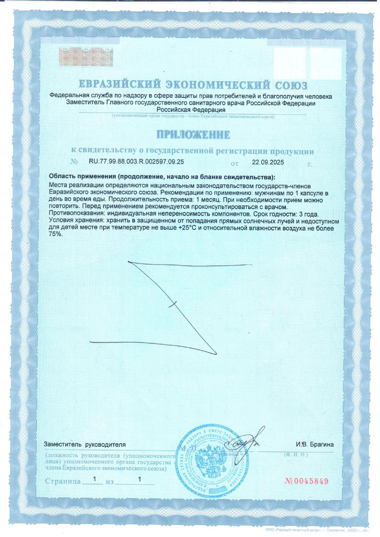 | Наименование биологически активного вещества | Содержание биологически активного вещества в рекомендуемой суточной дозе (в 1 капсуле) | % от нормы потребления |